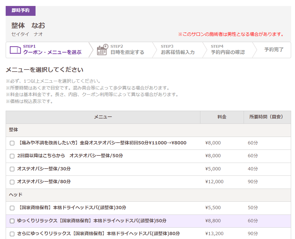 初めての方はこちらのメニューがおすすめです!